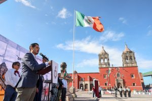 Acompañado, por la presidenta del Sistema DIF, Eugenia Martínez Carrillo; miembros del Honorable Ayuntamiento y titulares de diversas dependencias municipales, el primer edil presentó el calendario de actividades conmemorativas que se realizarán durante septiembre para recordar la lucha por la Independencia de México.